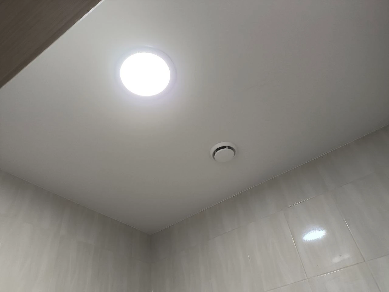 Белое матовое полотностеновой плинтус со вставкойвстраиваемый вентилятор