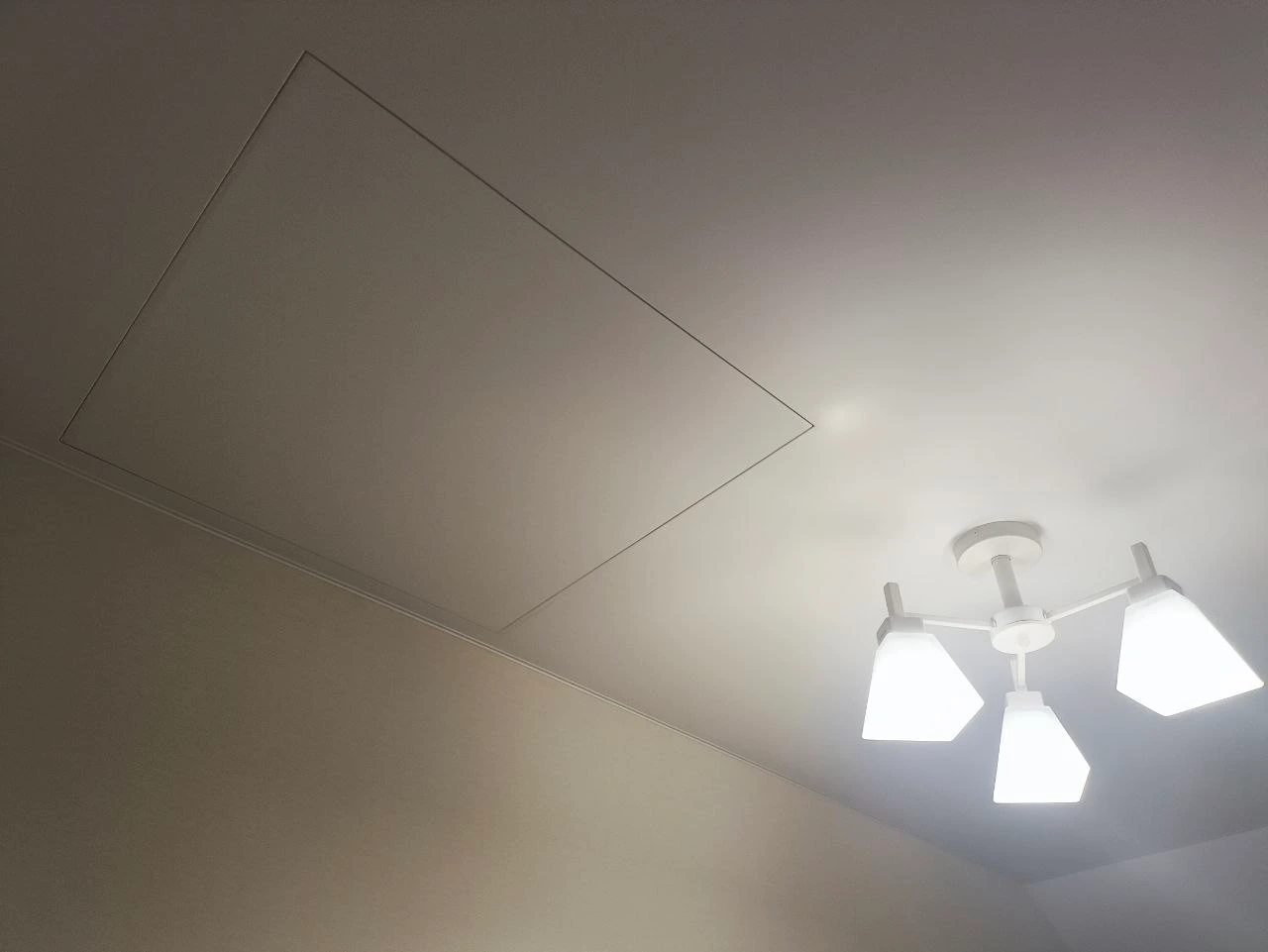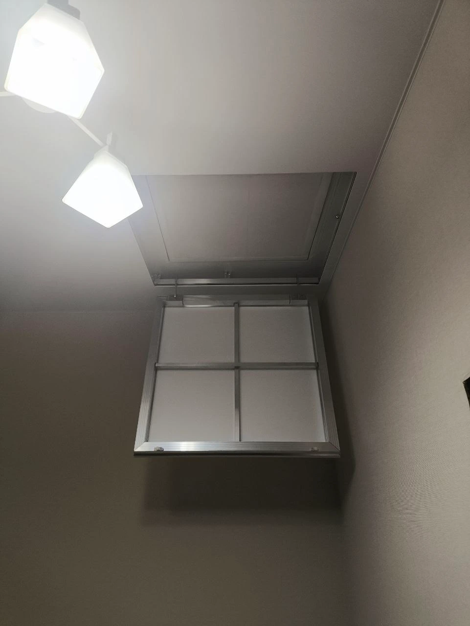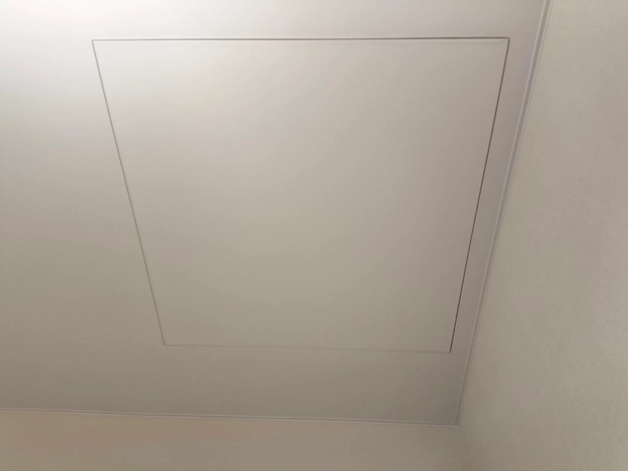 Белое матовое полотностеновой профиль со вставкойразделительный профиль со вставкойотбойникревизионный люк 700*700