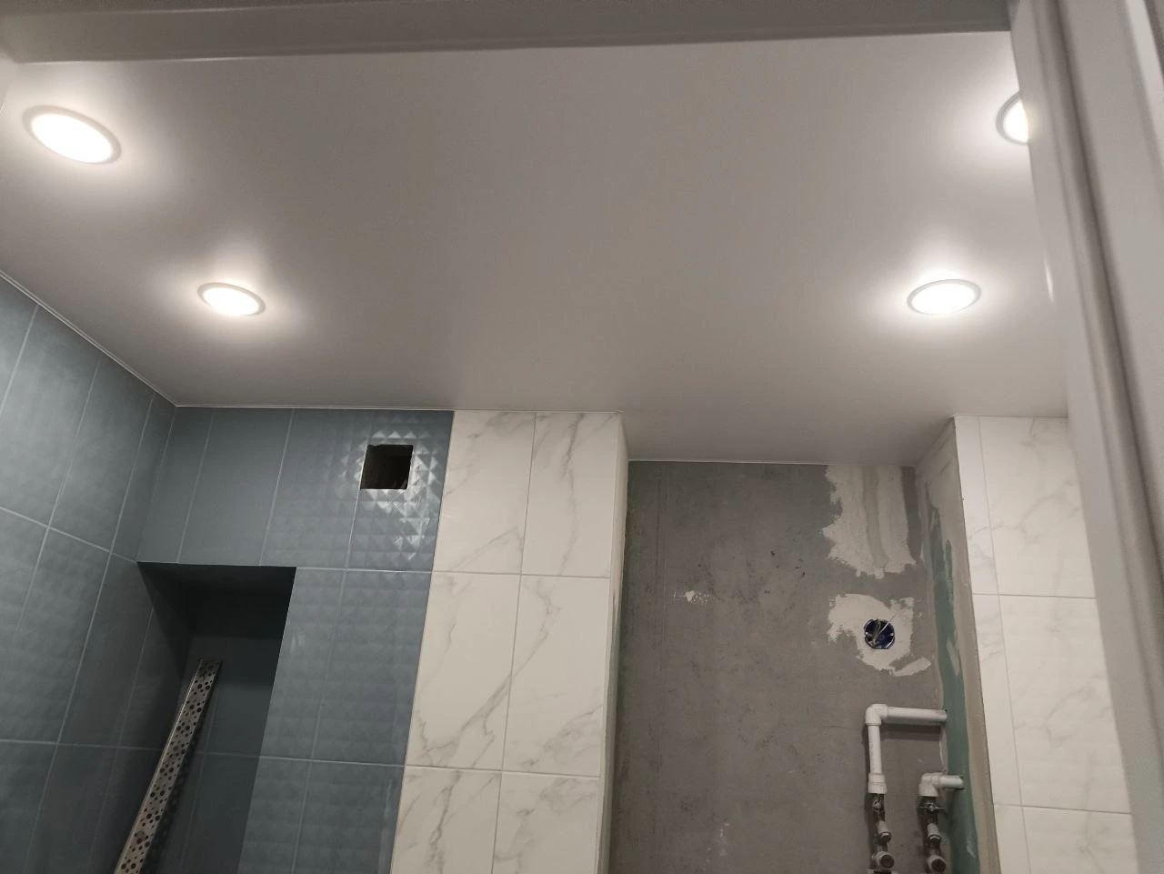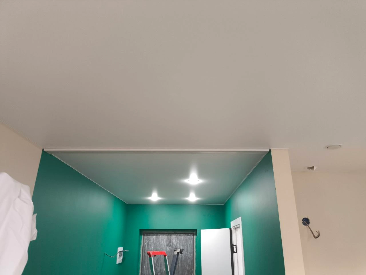Точечные светильникипластиковый карнизбелое матовое полотностеновой профиль со встввкой