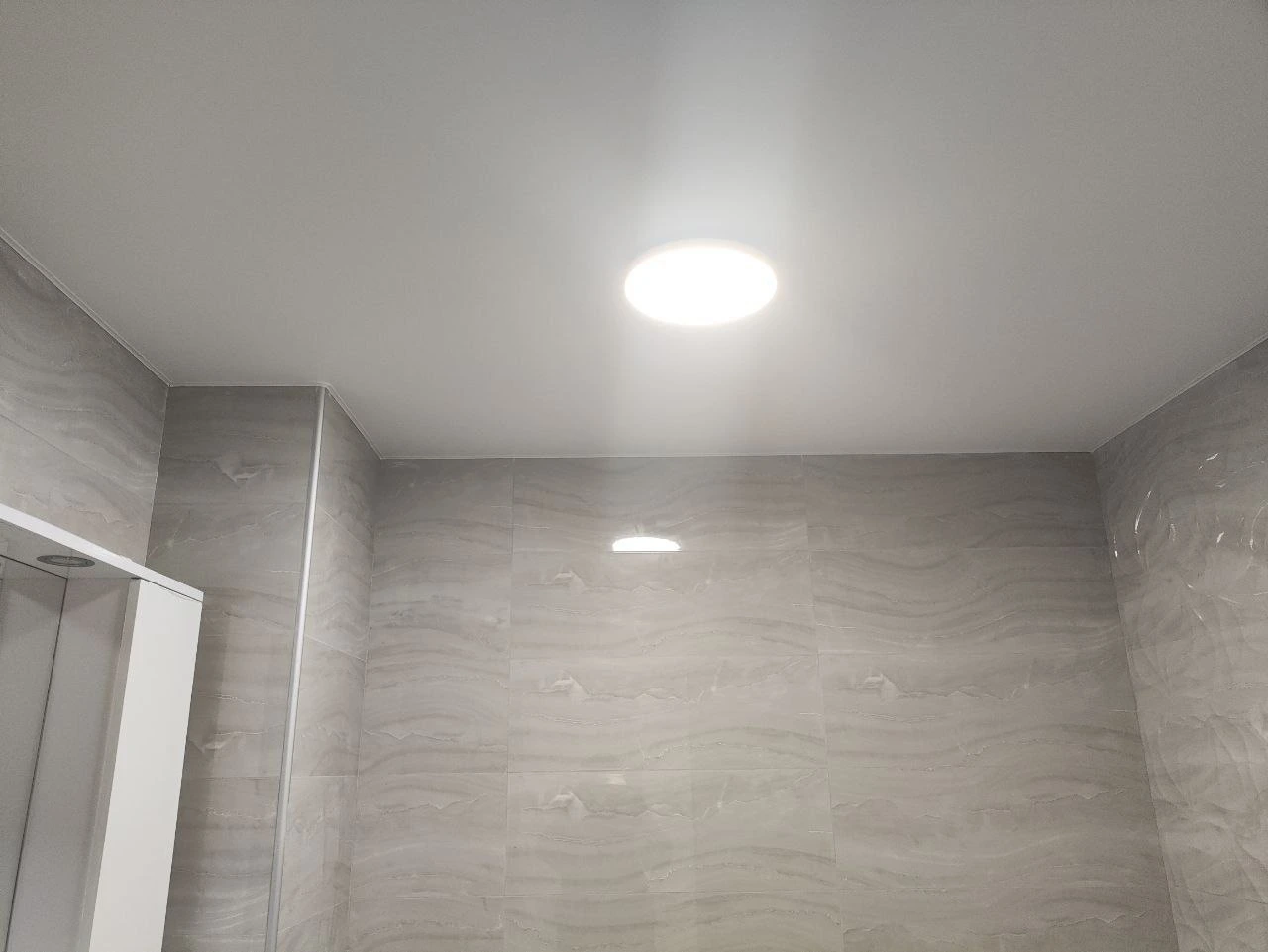 Белый матовый потолокстеновой профиль со вставкой