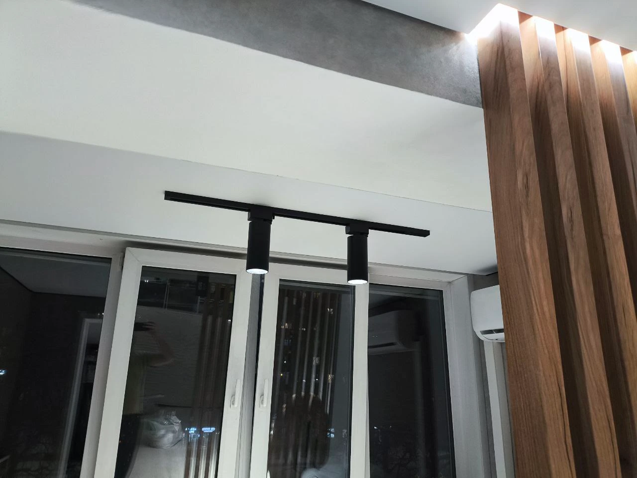 Пластиковый теневой профиль по периметрупарящий профиль с подсветкойнакладной однофазный трекспоты.
